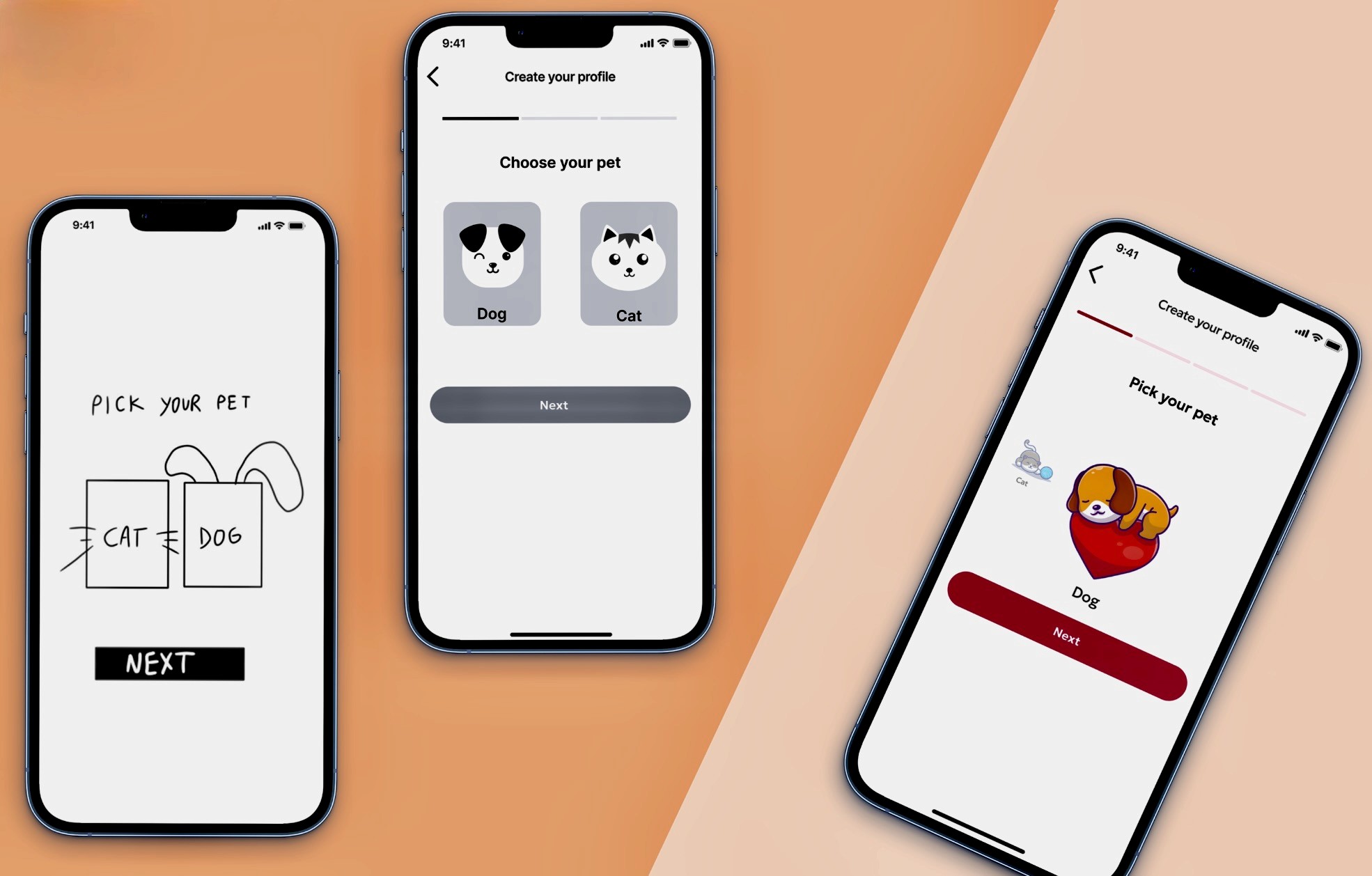 Final designs with interactive prototype: https://www.behance.net/gallery/175872981/Pet-App-iOS-UIUX-Design