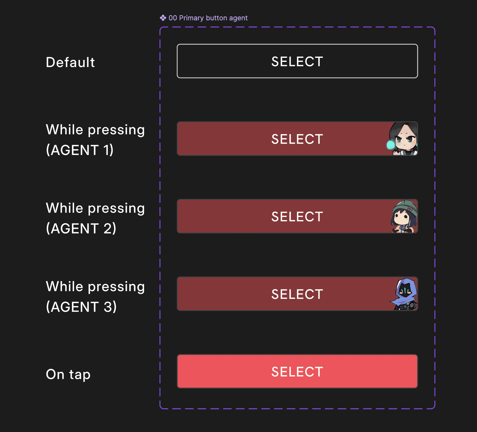 This is the button component I implemented. In the pressed state, I added charming interactive elements to enhance user delight and engagement. These elements are unique to each agent.